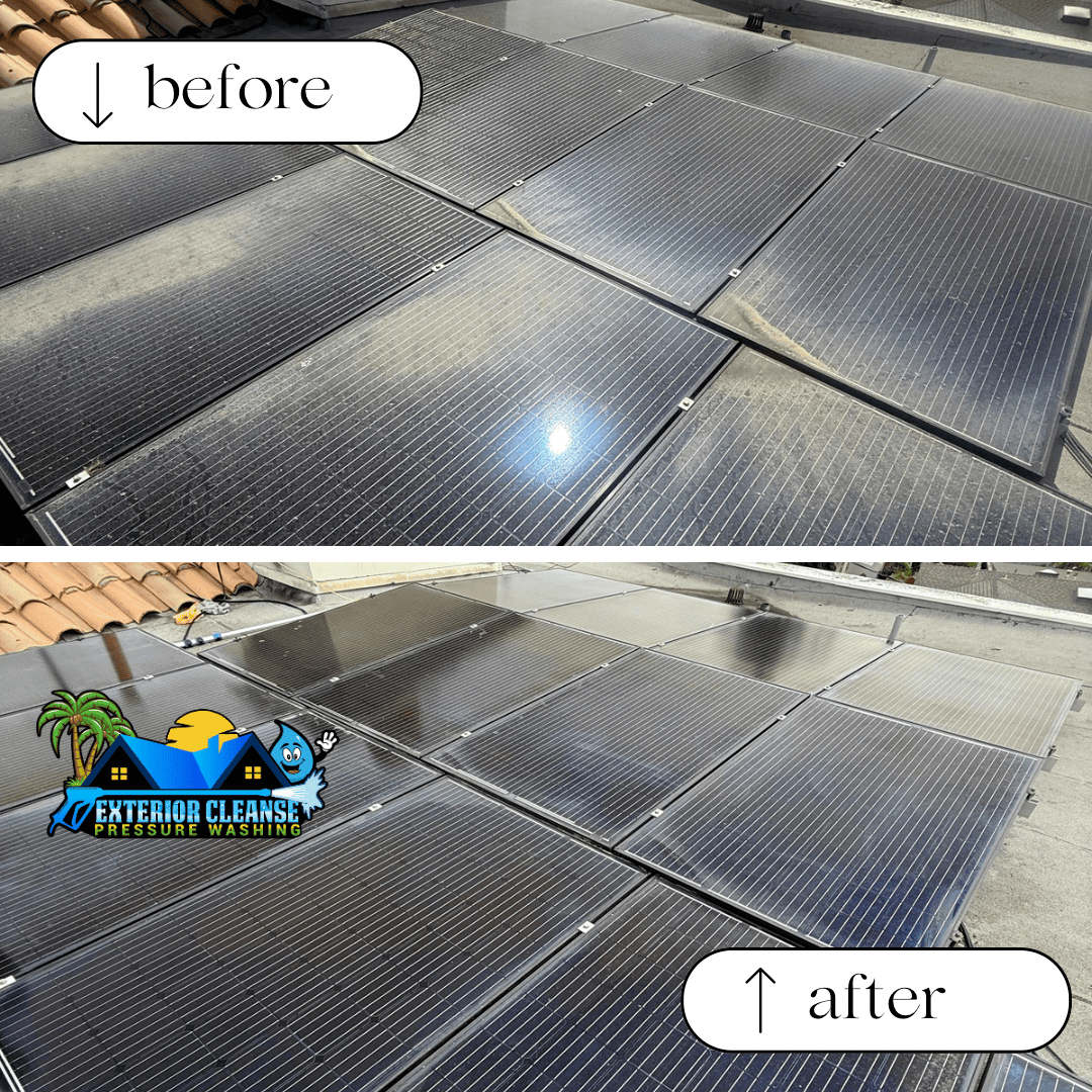 For this project, we performed a thorough Solar Panel Cleaning using a purified water system and soft-bristle brushes specifically designed for delicate panel surfaces. This method ensures a spotless, streak-free finish without causing scratches or voiding manufacturer warranties. Unlike standard pressure washing, our process is low-pressure and safe, preventing damage while effectively removing stubborn buildup.